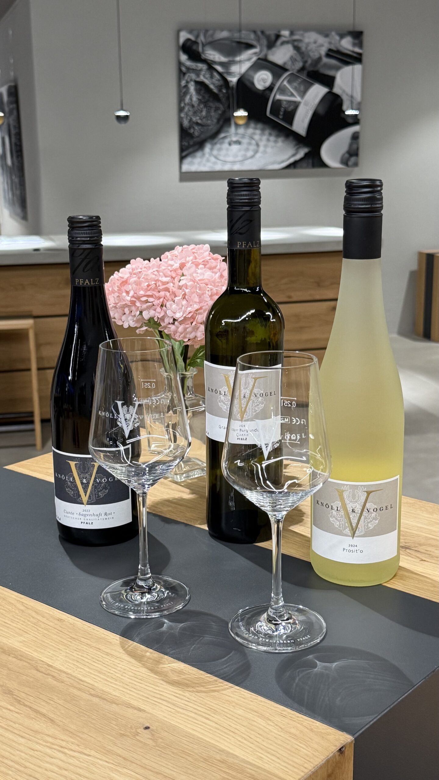 Ein Rotwein, ein Weißwein und ein Secco, fertig zum Verschenken.